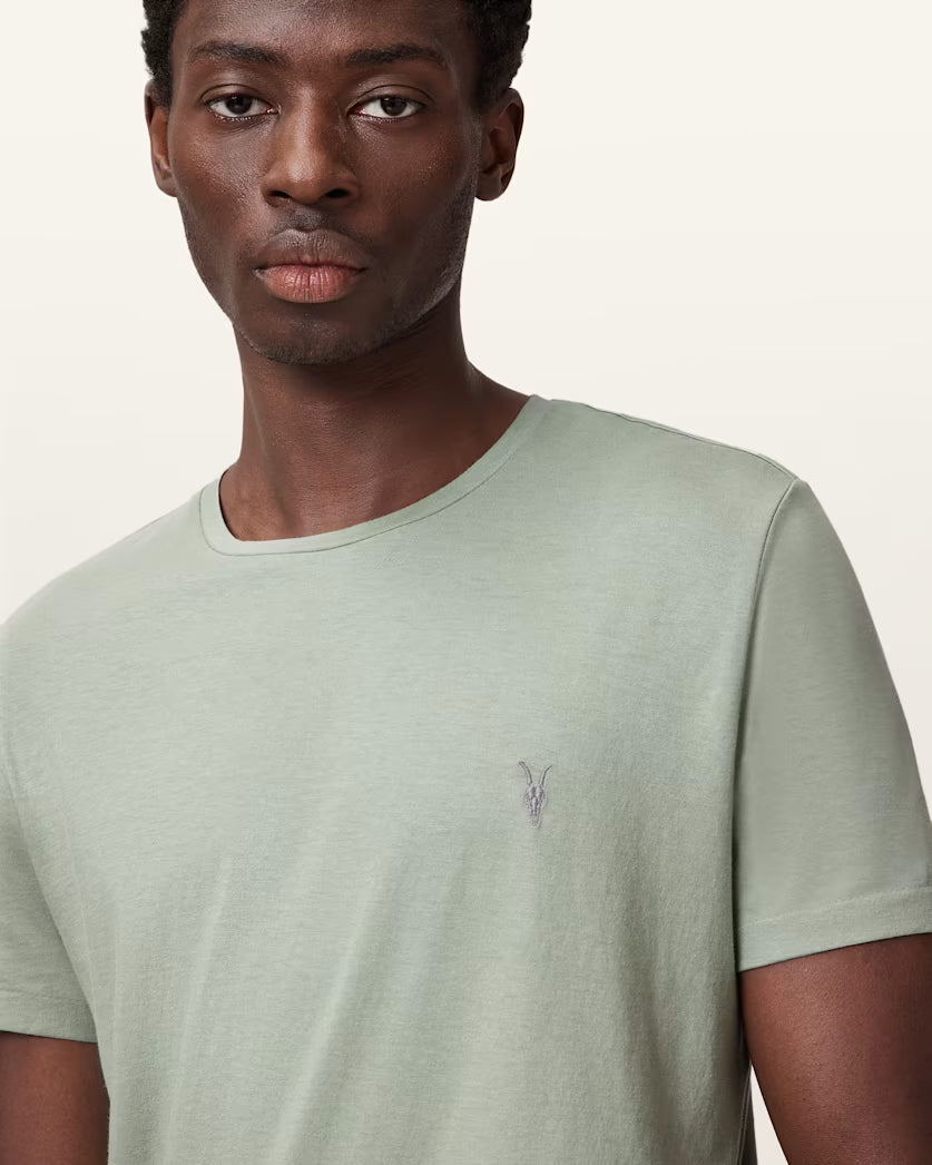 טי שירט קצרה לגברים מבית המותג אולסיינטס. גזרת סלים פיט, עם מפתח עגול, שרוולים קצרים ולוגו המותג רקום בצד החזה.