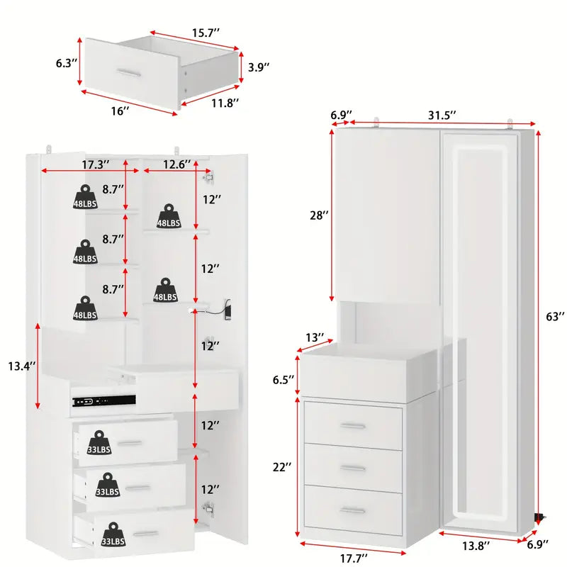 ™Eloria | שולחן איפור עם מראת גוף מלאה LED – אחסון נשלף, עיצוב אופנתי ומרווח