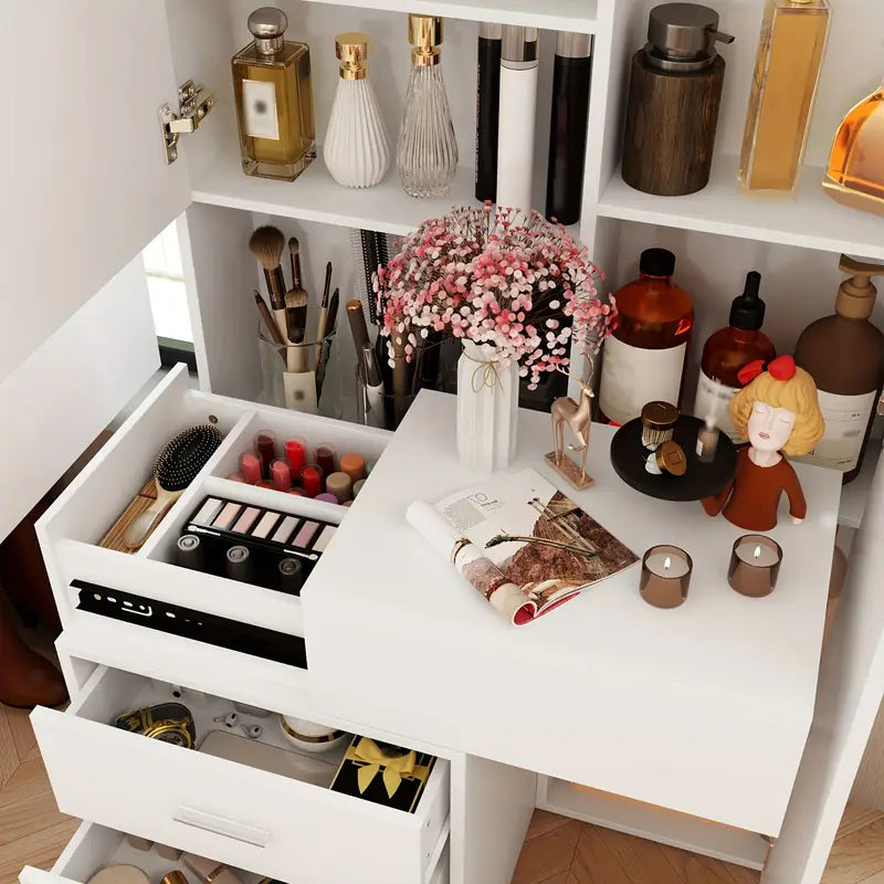 מגירות נשלפות מאפשרות לארגן את מוצרי הקוסמטיקה, טיפוח העור והאביזרים.