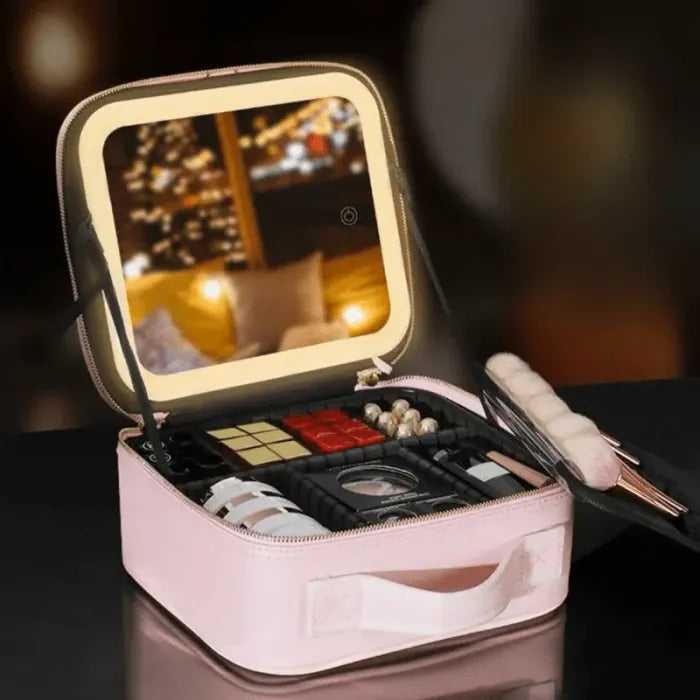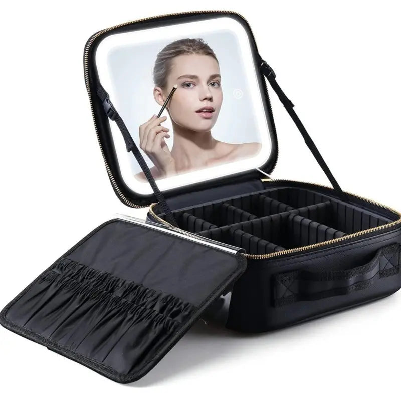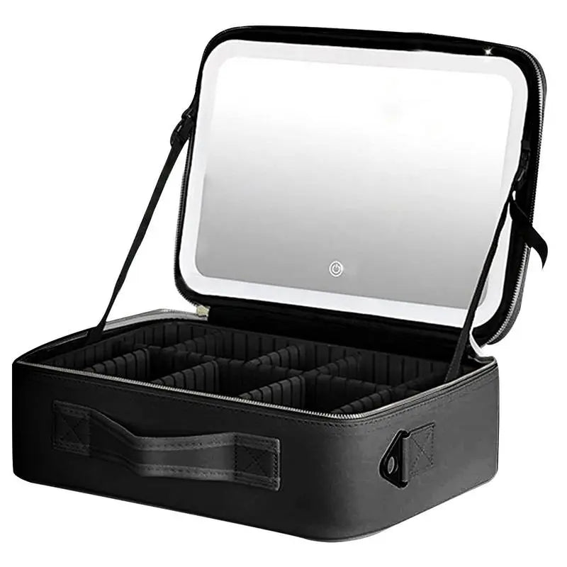 תיק קוסמטיקה גדול עם מראה מוארת.