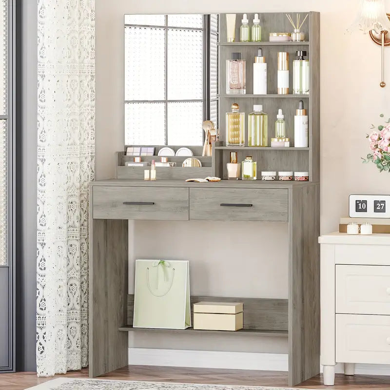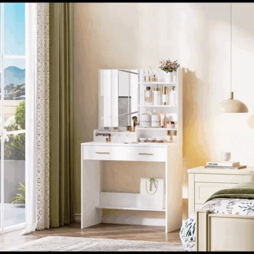 ™Serenya | שידת איפור מודרנית – גימור לבן, מראה ואחסון נרחב, רהיט פונקציונלי לבית
