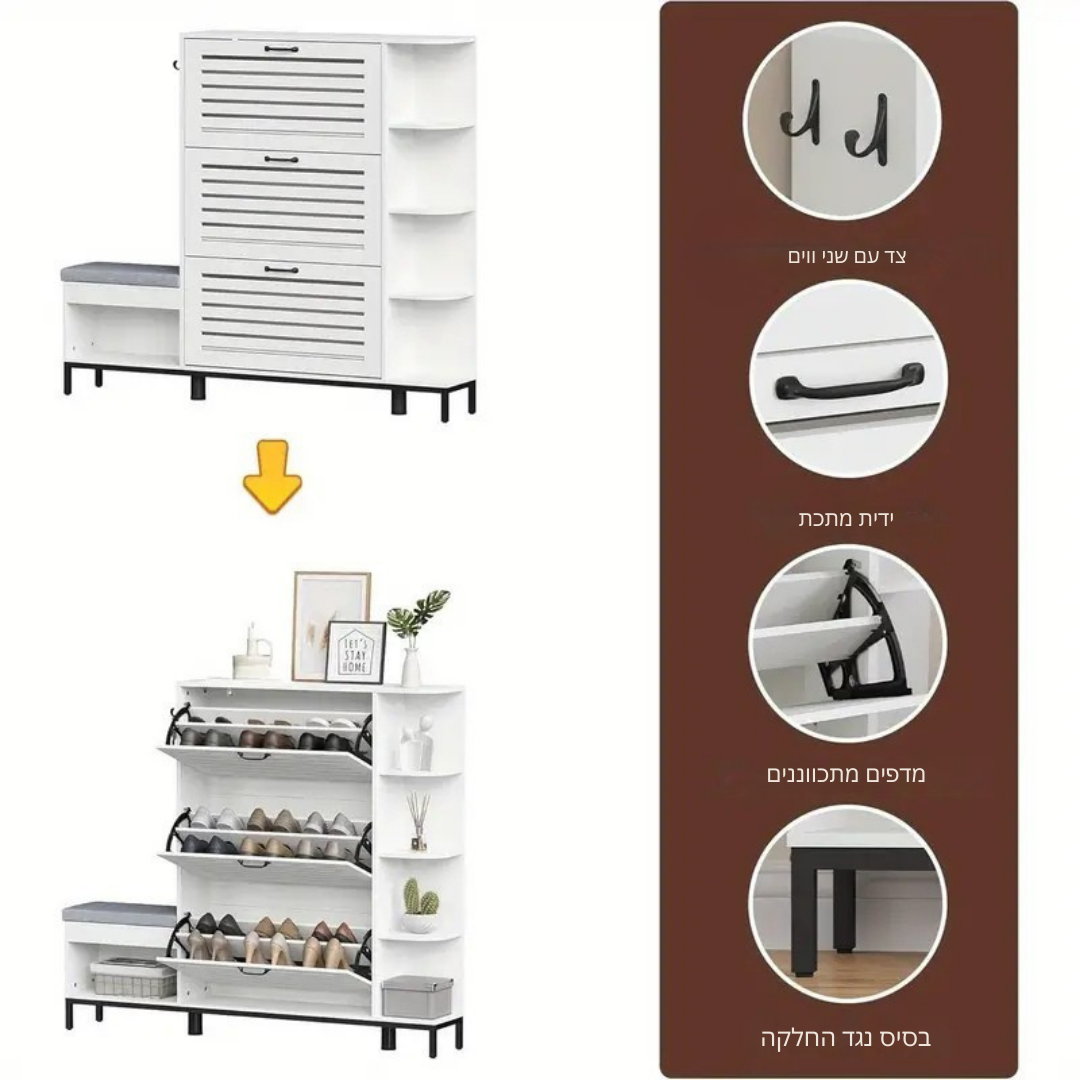 מספק מקום ישיבה תוך שמירה על סדר הנעליים.