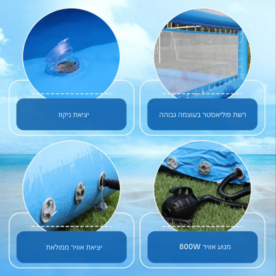 המפוח העוצמתי מאפשר להנפיש את המגרש במהירות, כך שאתם יכולים להתחיל לשחק בלי לחכות.